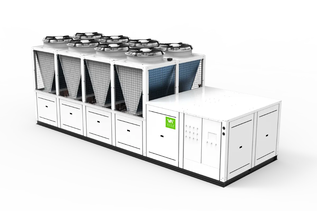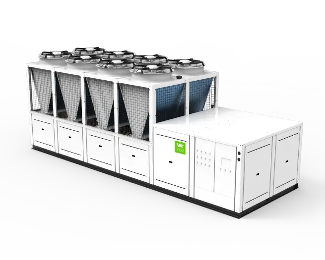 The units of Veck's "Air-cooled High-Efficient Energy Station" series adopt an integrated design with multiple compressors. They internally integrate a water pipeline system with the same circuit length, a flowmeter system, an inlet and outlet water pressure detection system, an intelligent control cabinet, a power distribution cabinet system, and a cloud platform AI self-learning energy-saving control system. Users only need to connect the water inlets and outlets of the terminal equipment to the units. On the one hand, this saves on-site engineering costs, and on the other hand, it reduces the operating costs of the units.